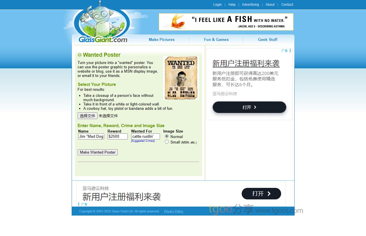 趣站地址:Wanted Poster Generator-老西部风格通缉令海报生成器