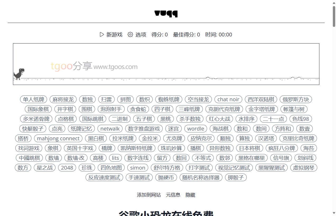 趣站地址:谷歌小恐龙-离线跑酷小游戏轻松玩
