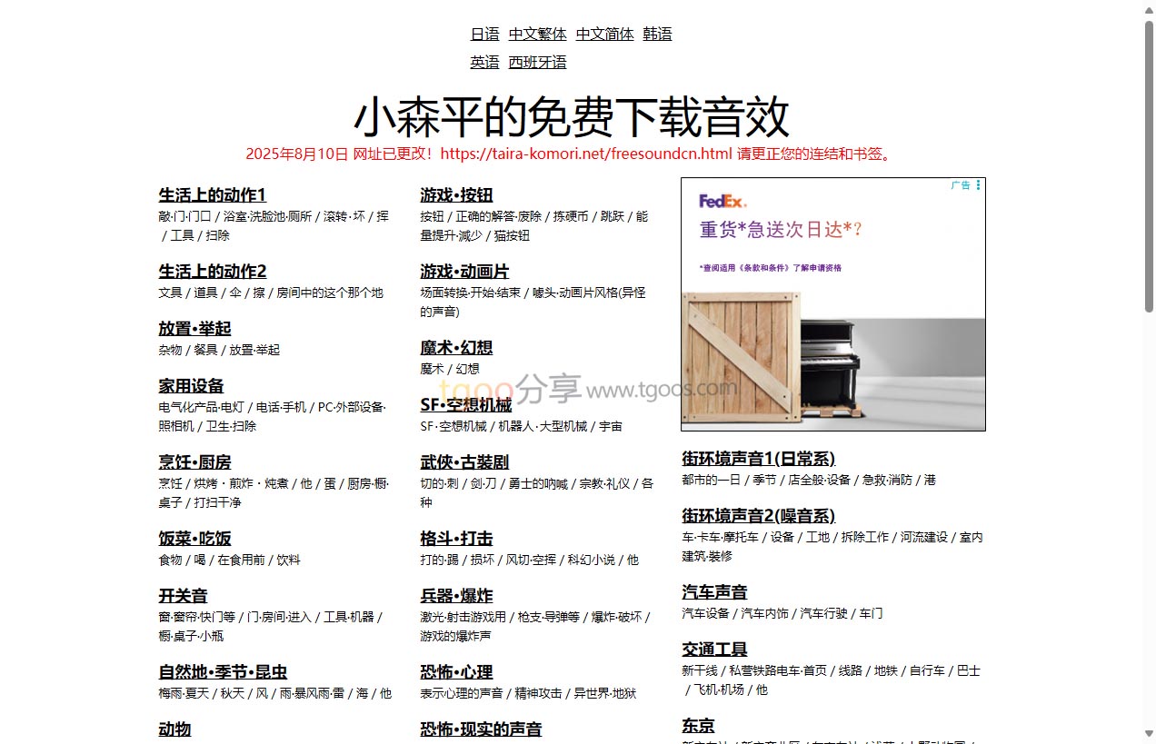 趣站地址:小森平的免费下载音效-日本高品质免费音效资源库
