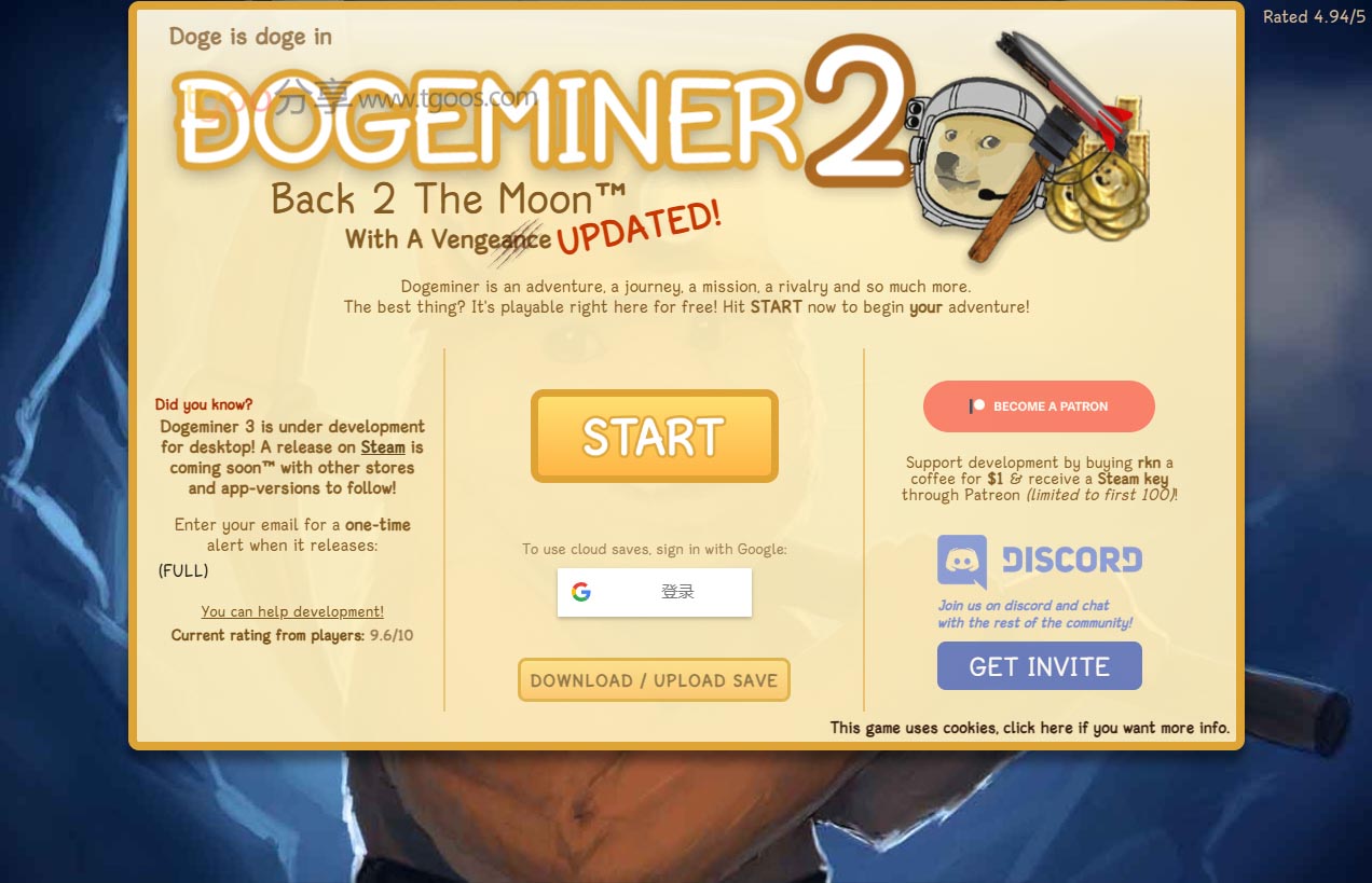 趣站地址:Dogeminer 2-狗狗币太空挖矿模拟点击游戏