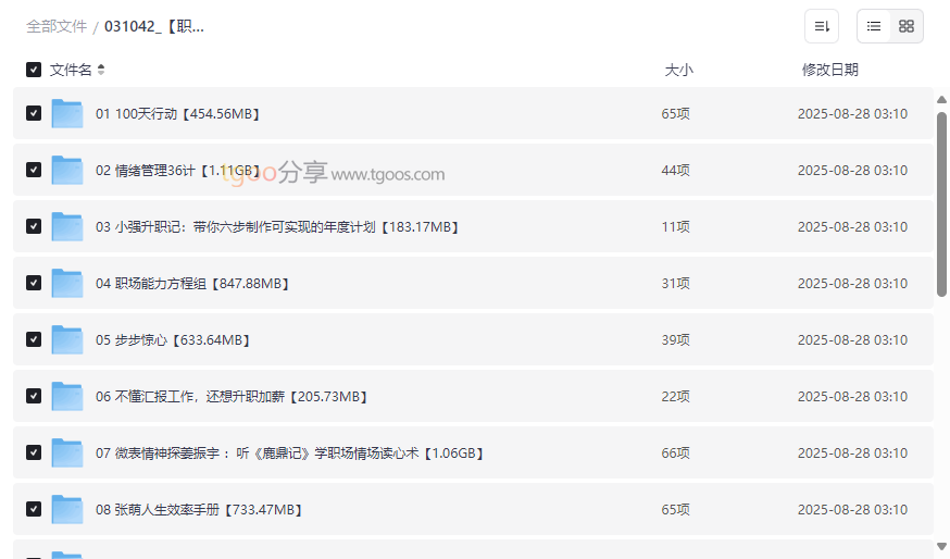 资源地址:《职场管理19套课程合集》11GB高效工作方法网盘资源下载