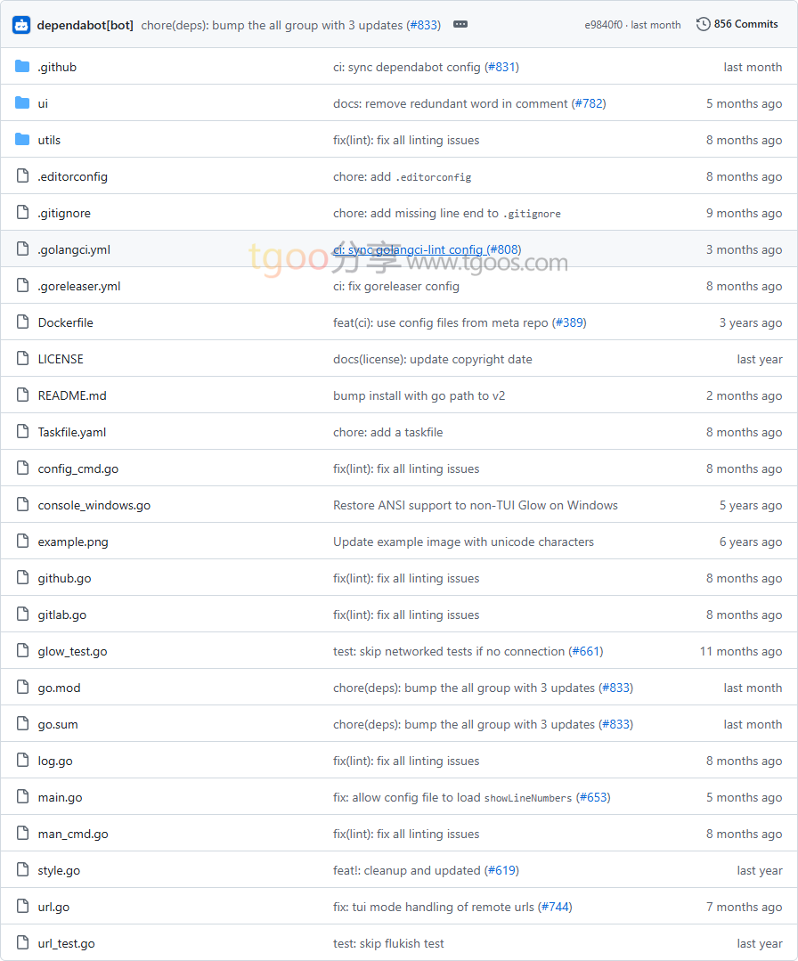 用户案例:作为 Charm 生态系统的一部分,Glow 已被众多开发者和开源项目用于改善命令行文档阅读体验。