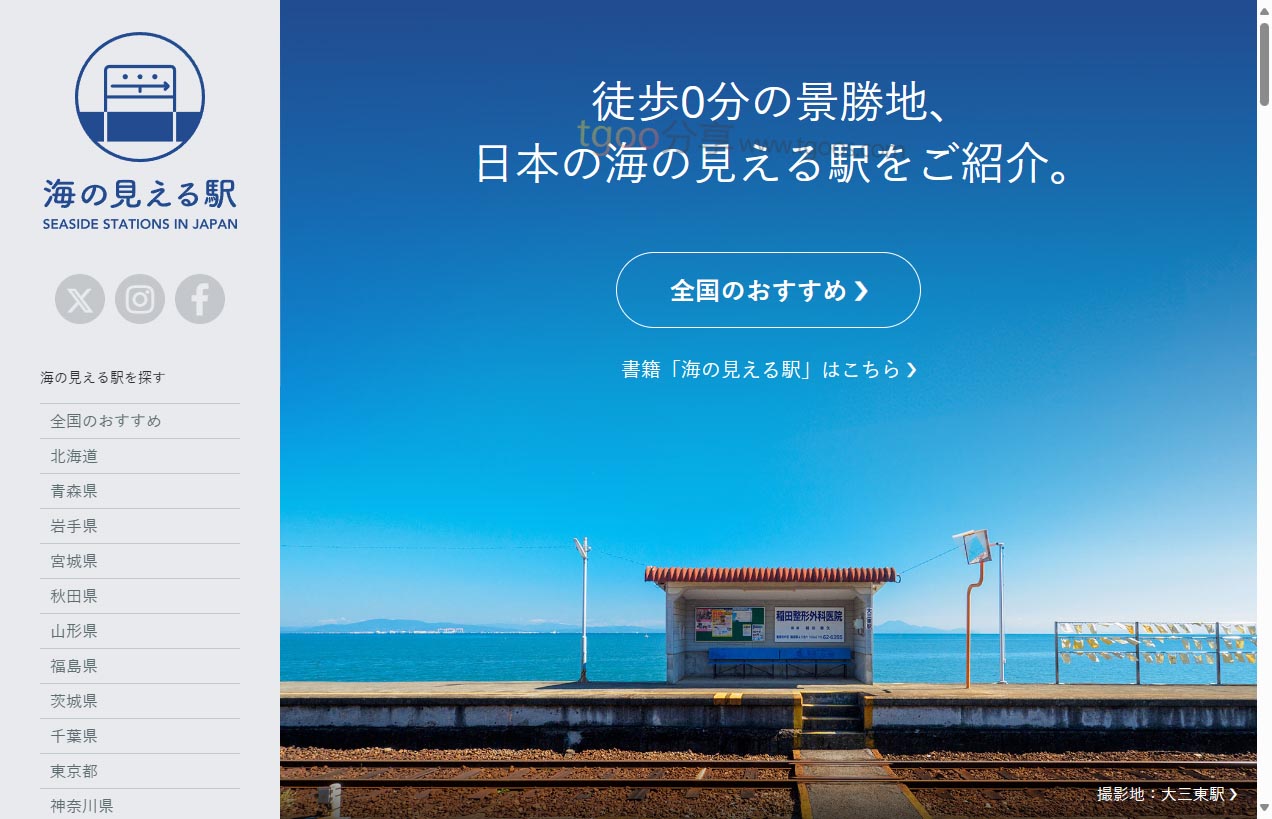 海の見える駅 〜徒歩0分の景勝地〜(Seaside Station)是一个专注于日本海边车站观光的信息平台,提供全国范围内可直接欣赏海景的车站详细介绍,帮助旅行爱好者、摄影爱好者和铁路迷发现并规划独特的海岸线旅行路线。该网站收录了全国267个可直接看到海景的车站信息,每个站点都配有丰富的实景照片和详细的位置信息,特别强调”徒步0分钟”即可到达观景点的便利性。作为日本海景车站的专题网站,它不仅是旅行规划工具,更是发现小众美景的指南,适合计划日本深度游的游客、寻找拍摄灵感的摄影师,以及热爱铁路文化的爱好者。网站内容完全免费访问,无需科学上网,为中文用户提供了发现日本海岸线隐藏美景的独特视角。