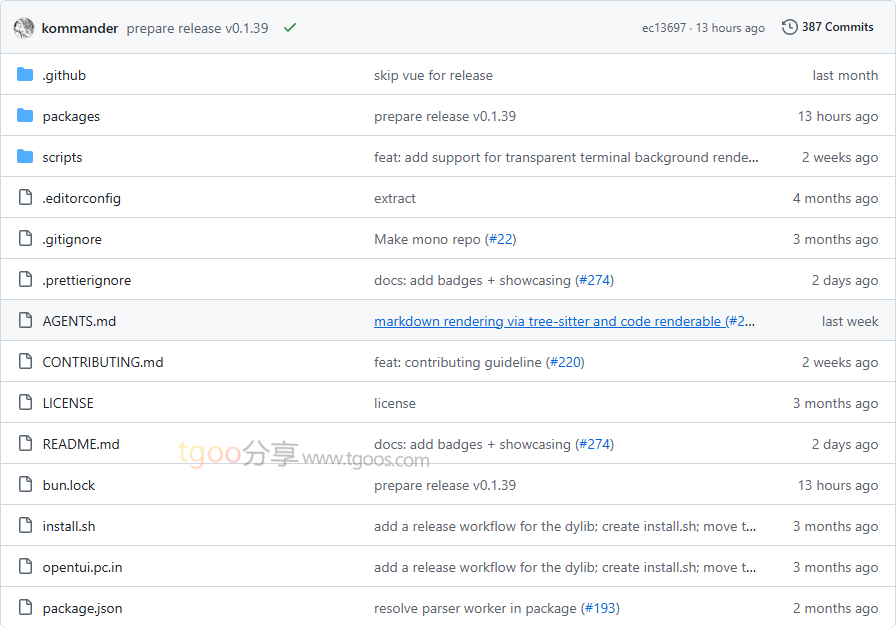 用户案例:目前,opencode和terminaldotshop等项目都在使用OpenTUI作为其TUI框架基础。