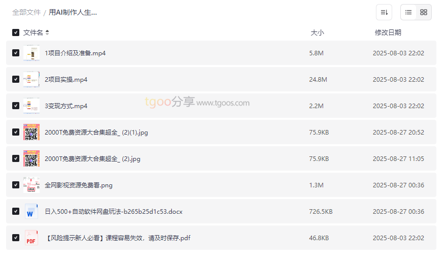 此外,课程附赠超值资源,如《2000T免费资源大合集》图片与《全网影视资源免费看》文件,助力用户降低素材成本;额外提供的《日入500+自动软件网盘玩法》文档,进一步扩展变现思路。整体课程结构清晰,从准备到变现形成闭环,适合追求高效学习的用户。