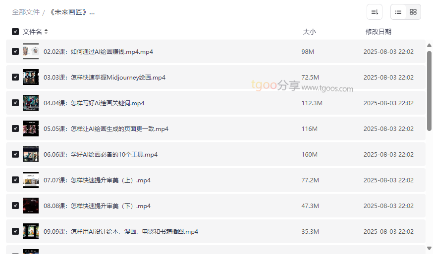《未来画匠:AI绘画全技法与商业应用精讲》是一套专为AI绘画爱好者和从业者设计的实战课程,全面覆盖从基础入门到商业变现的全流程。本资源整合了 Midjourney绘画技法、AI关键词撰写技巧、审美提升方法、多领域商业应用案例 等核心内容,帮助学习者系统掌握AI绘画技能并实现商业价值。课程适合: