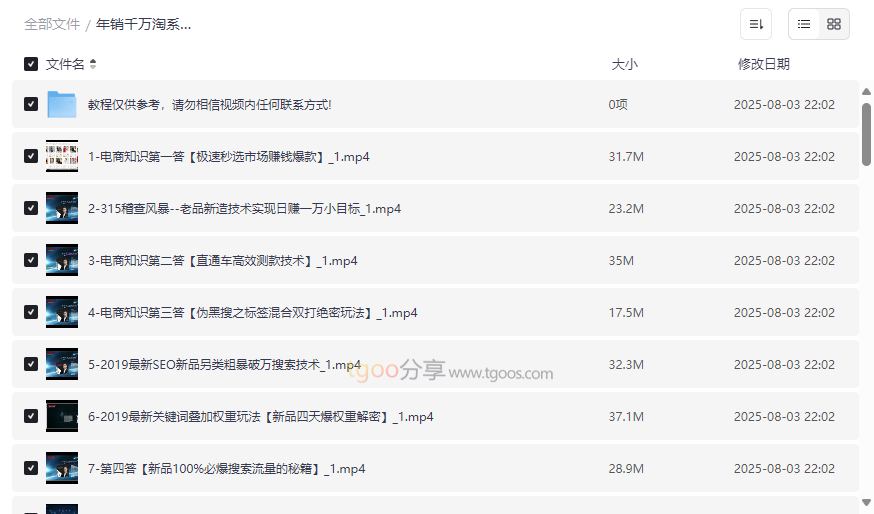 “年销千万淘系商家实战分享”是一套专为电商从业者设计的高效运营课程,汇集了多位成功商家的实战经验与最新技术。本资源覆盖了从市场选品、流量获取到数据优化的全链路策略,特别针对淘宝/天猫平台的运营痛点,提供了可落地的解决方案。课程内容紧跟电商平台规则变化,包含2019年最新SEO技术、直通车优化、黑搜玩法等核心模块,适合: