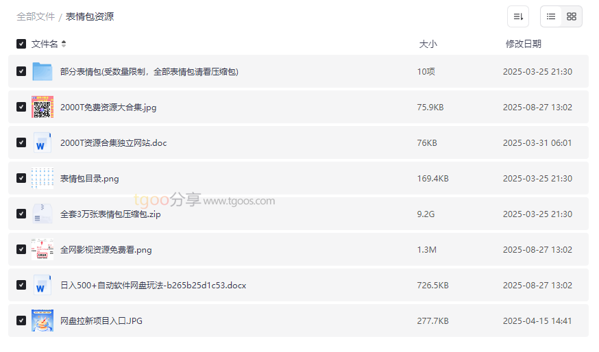 目录文件清晰展示了所有表情包的分类结构与内容示例,帮助用户快速定位所需主题。部分精选表情包已单独列出,方便即时试用。亮点在于可视化导航与即点即用,尤其适合时间紧张的用户优先体验。 - 网盘拉新与自动赚钱工具
