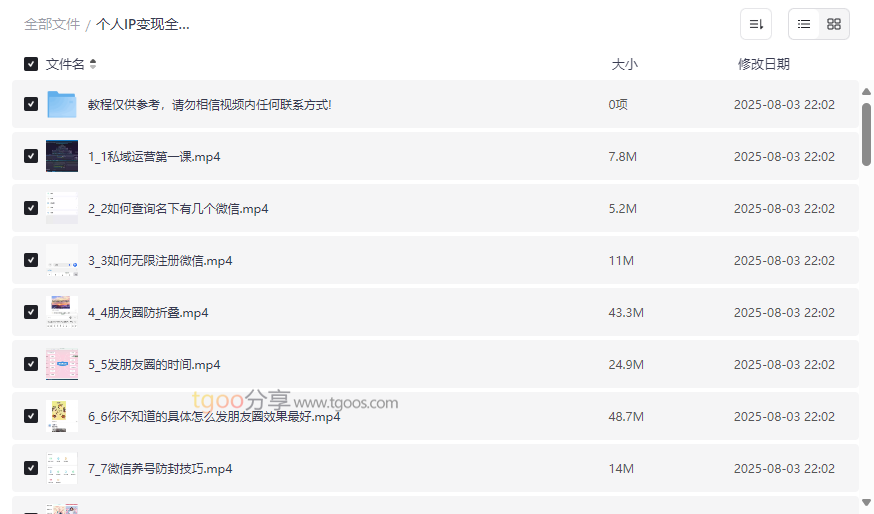 在数字化时代,个人IP已成为变现的重要途径。本资源《个人IP变现全攻略:私域运营实战技巧,快速打造吸金矩阵》提供了一套完整的实战指南,覆盖私域运营、微信养号、公众号搭建、知乎引流、工具使用等核心模块。通过系统化的视频教程,帮助用户从零开始构建个人品牌,实现高效变现。资源亮点包括: