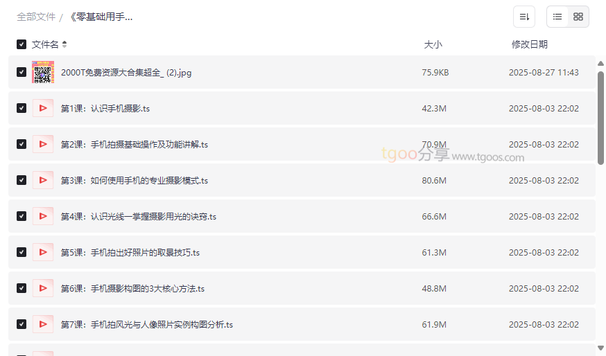 资源地址:《零基础用手机轻松拍大片》21节实战课程网盘资源下载