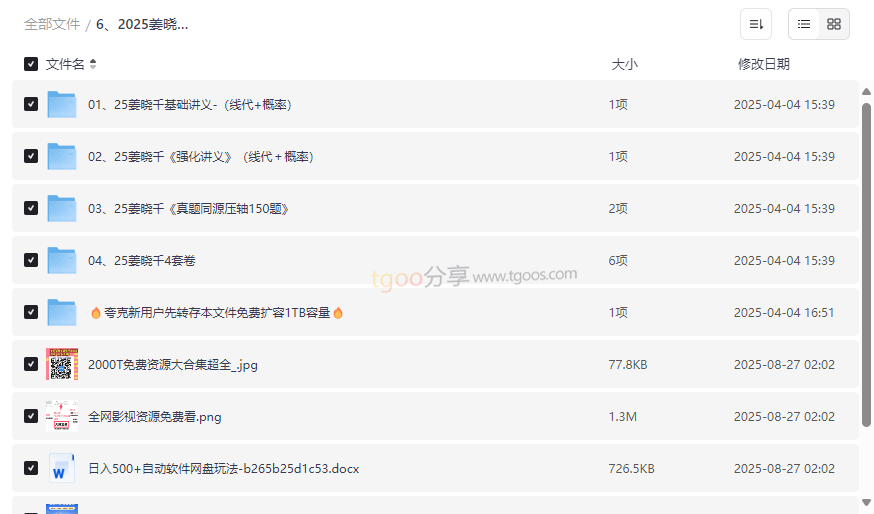 “2025姜晓千考研数学系列资源”是专为考研学子量身打造的高质量备考资料,由知名考研数学讲师姜晓千精心编写。本资源全面覆盖线性代数、概率论、真题同源压轴题及模拟卷等核心内容,通过系统化的讲义、习题与解析,帮助考生夯实基础、强化技巧、冲刺高分。该资源适用于: