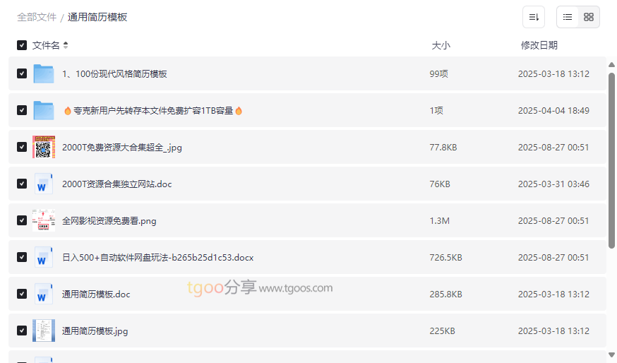 除了核心简历模板,资源还包含实用附加内容,如“网盘拉新项目入口”和“日入500+自动软件网盘玩法”文档,为用户提供额外收入机会。同时,“2000T免费资源大合集”和“全网影视资源免费看”图片扩展了资源价值,适合多用途需求。这些内容不仅优化求职过程,还帮助用户探索副业可能,增强整体实用性。 - 格式兼容与易用性