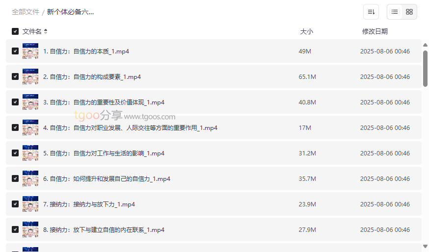 在当今快速变化的职业环境中,“新个体”已成为越来越多人的自我定位。无论是自由职业者、创业者,还是希望提升个人影响力的职场人,掌握核心软实力成为脱颖而出的关键。本资源《新个体必备六种能力》是一套系统化的视频课程,围绕自信力、接纳力、状态力、口播力等六大核心能力展开讲解,通过理论剖析+实操方法相结合的方式,帮助学习者建立可持续成长的个人能力体系。课程内容层层递进,从内在心态调整到外在表达输出,全面覆盖新个体成长所需的关键节点,适合以下人群使用: