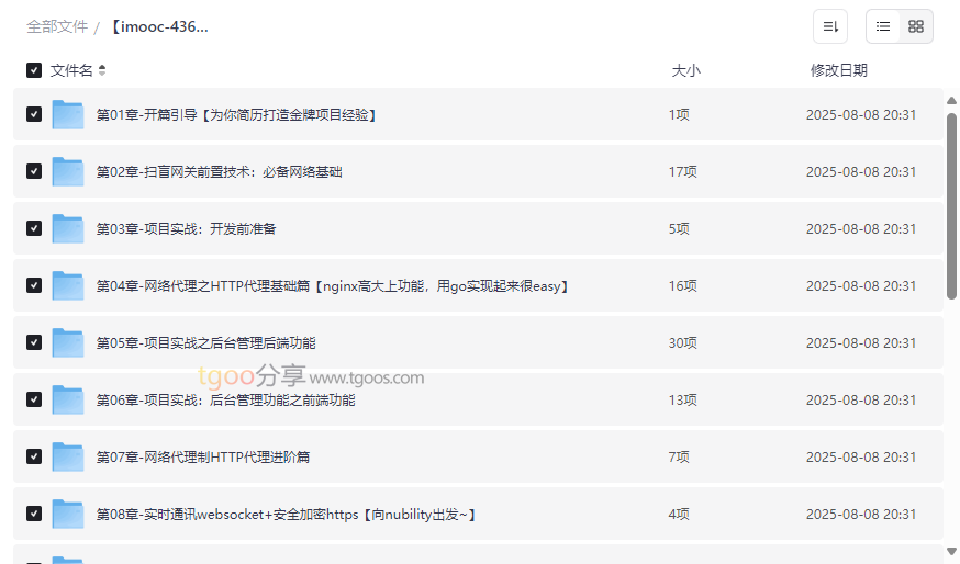 在当今微服务架构盛行的时代,企业级微服务网关已成为后端开发的核心组件。本资源《Vue+Go开发企业级微服务网关项目》完整收录了慕课网436号课程的全套内容,涵盖网络基础、HTTP/TCP/GRPC代理、负载均衡、中间件开发、服务发现、多租户平台等核心技术,通过前后端分离的实战项目,帮助开发者构建简历中的金牌项目经验。这套资源特别适合: