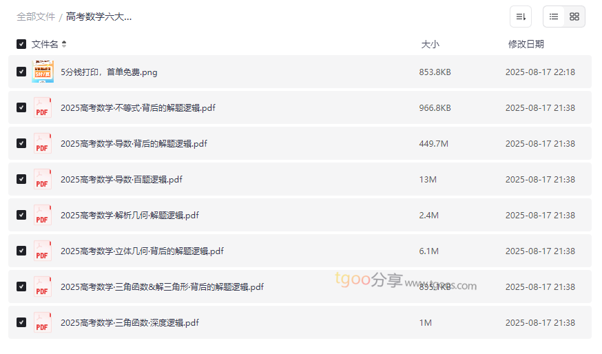 “高考数学六大板块解题逻辑”是一套专为2025年高考数学备考设计的深度解析资源,聚焦于高考数学中最为核心和常考的六大知识板块。本资源通过系统梳理不等式、导数、解析几何、立体几何、三角函数及解三角形等关键内容,不仅提供基础解题方法,更深入剖析题目背后的逻辑思维与命题规律。适合: