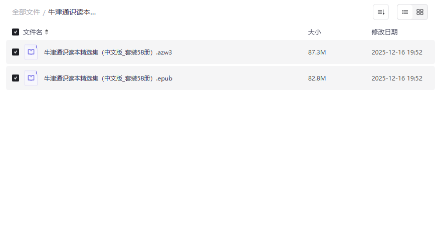 本合集精选牛津大学出版社的权威通识读本,每册均由领域专家撰写,内容精炼而深入。电子书格式兼容性强,支持多种设备阅读,方便随时随地学习。亮点在于覆盖主题广泛,从《文学理论》到《量子理论》,从《佛学》到《全球化》,帮助读者快速掌握核心概念,适合作为跨学科入门首选。 - 哲学与思想类 —— 如《康德》、《尼采》,解析经典哲学体系