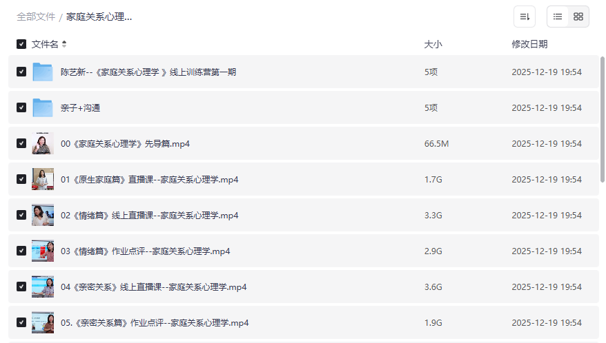 资源地址:《家庭关系心理学线上训练营》陈艺新主讲完整版网盘资源下载
