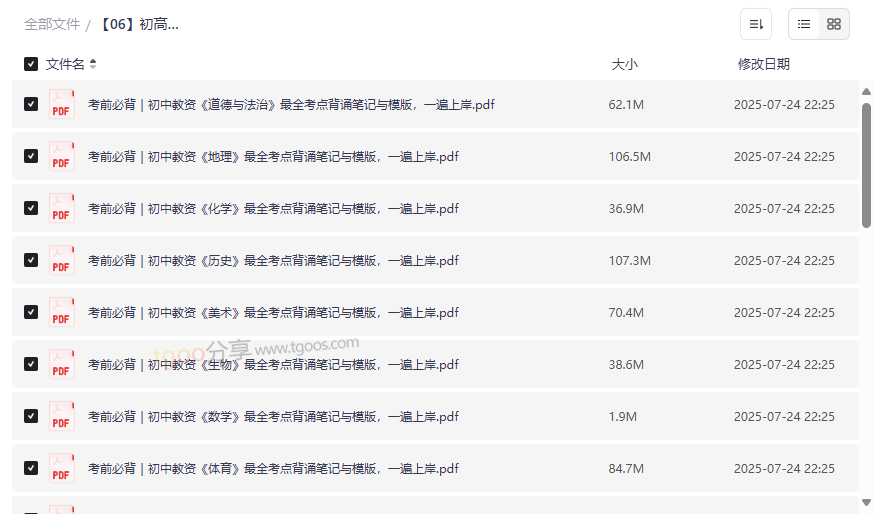 亮点:资源按学科细分,每科均包含背诵笔记与答题模板,帮助考生快速构建知识框架,提升应试效率。