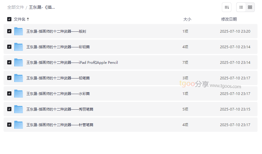 “吉祥物语”王东晟老师作为国内知名插画艺术家,其《插画师的十二种武器合集》是一套系统全面的插画学习资源。本资源整合了 版刻、彩铅、iPad Pro绘画、铅笔、水彩、秀丽笔、针管笔 等七大绘画技法,结合王东晟老师丰富的实战经验与创意理念,为学习者提供从基础工具到高级创作的全方位指导。这套高质量插画教程合集特别适合: