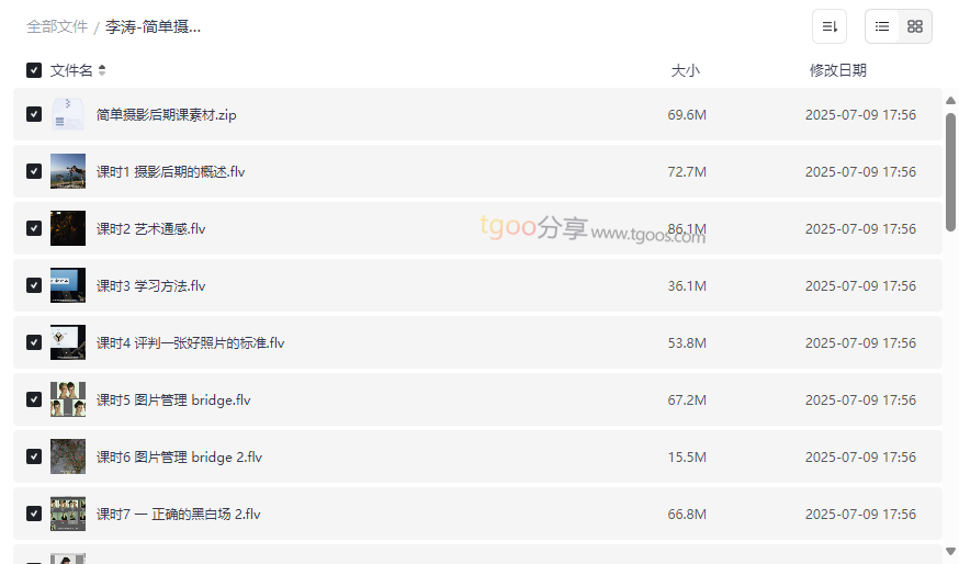 李涛简单摄影后期课资源截图展示