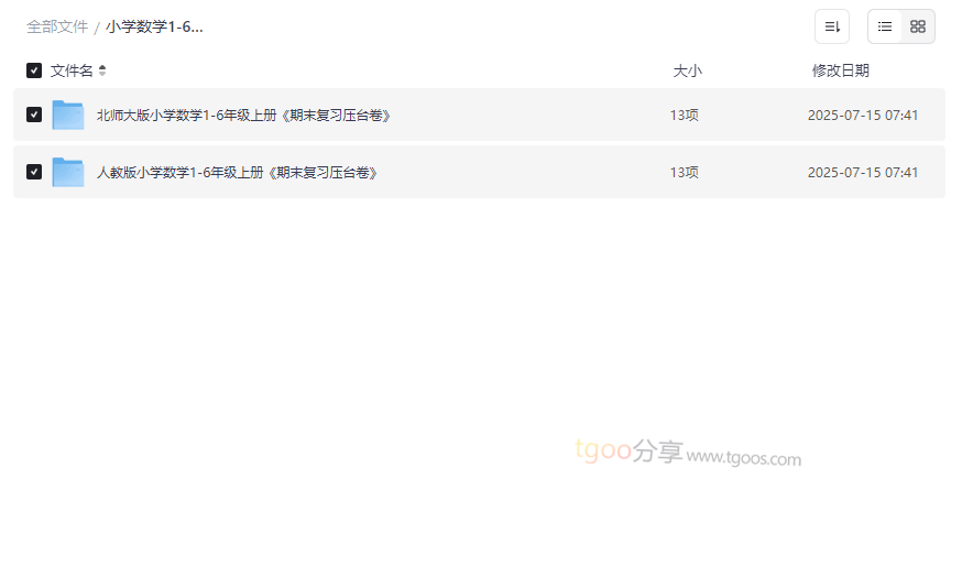 《期末复习压台卷》作为小学数学复习的权威辅助资料,专为1-6年级学生设计,全面覆盖北师大版和人教版两大主流教材体系。本资源集合了 各年级期末模拟试卷、详细参考答案、PDF电子版高清打印文件 等核心内容,将系统复习与高效备考结合,适合: