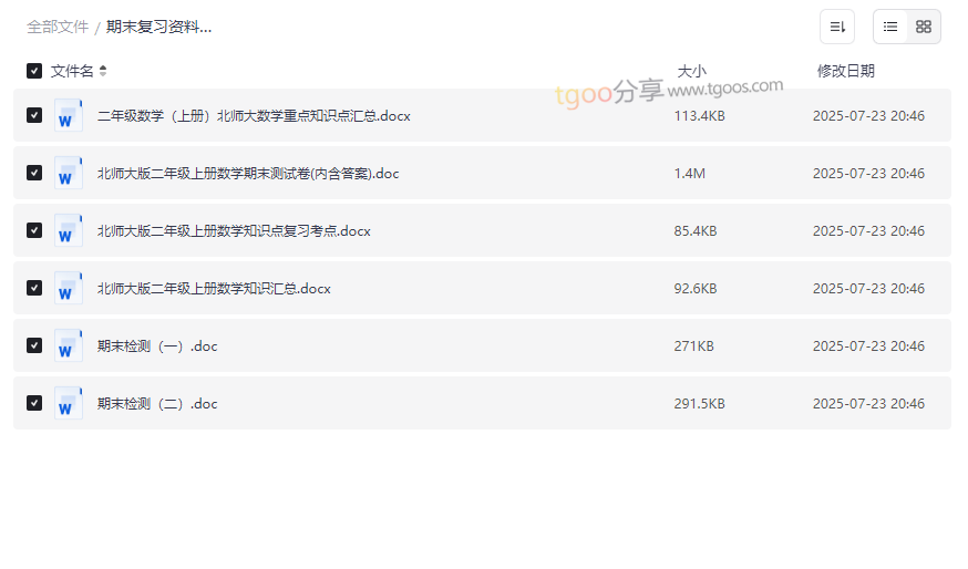 北师大版二年级数学期末复习资料截图展示