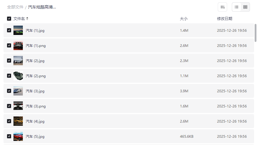 核心资源文件,包含2000张高清汽车壁纸,经过压缩处理以减小文件大小,同时保持原画质。亮点包括: