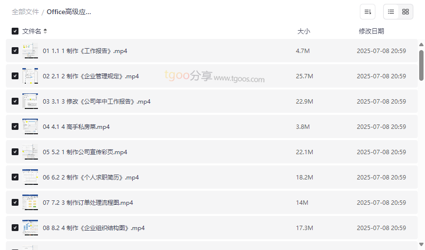 Office高级应用教程资源目录