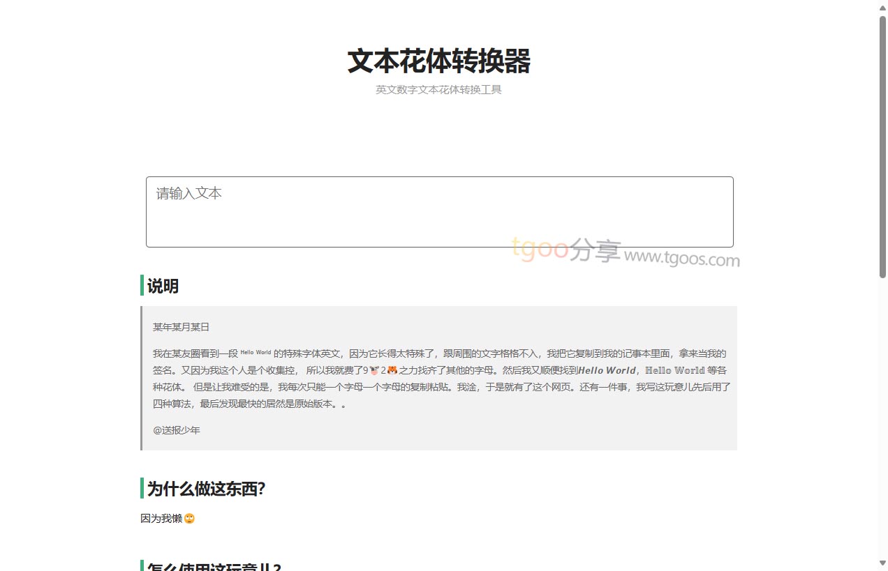 - 多风格花体转换:支持多种花体字体风格生成,包括草书、哥特式、装饰体等,用户输入普通英文或数字文本即可一键转换为美观的花体文字。适合社交媒体个性签名、海报标题设计等场景,提升内容视觉吸引力。