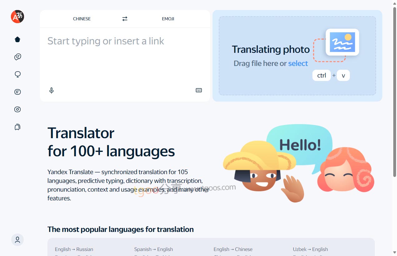 趣站地址:Yandex Translate-多语言在线翻译与词典查询