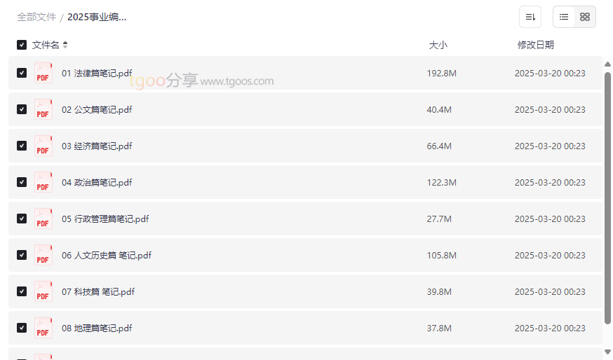 “2025事业编统考公基础5000笔记”是专为准备事业单位编制考试的考生量身打造的高效备考资源。这份资源全面覆盖了法律、公文、经济、政治、行政管理、人文历史、科技、地理等八大核心模块,整合了5000条精华笔记,将庞杂的公共基础知识系统化、条理化。通过分篇PDF笔记和综合总览文件,帮助考生快速掌握考点,节省复习时间。本资源特别适合:
