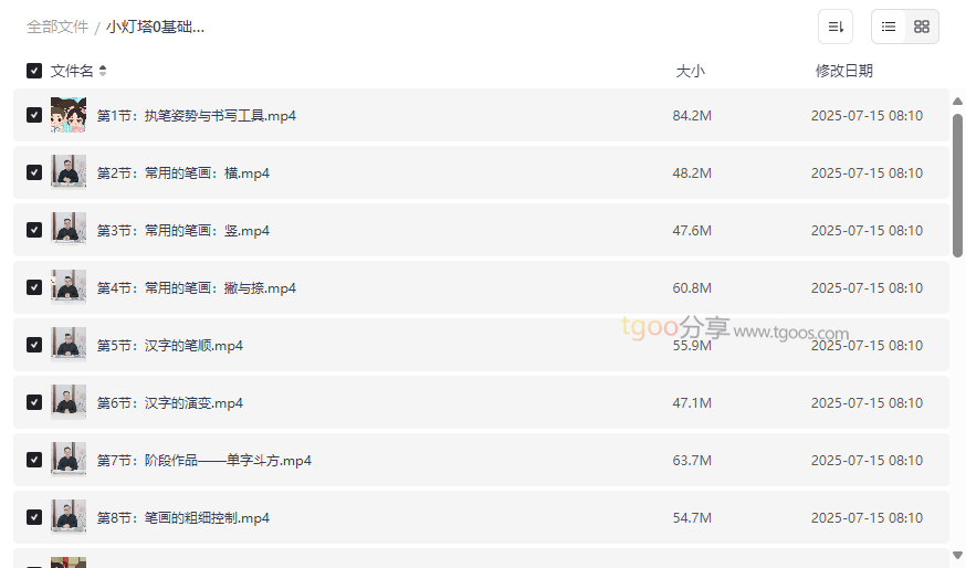 小灯塔0基础毛笔书法训练营资源截图展示
