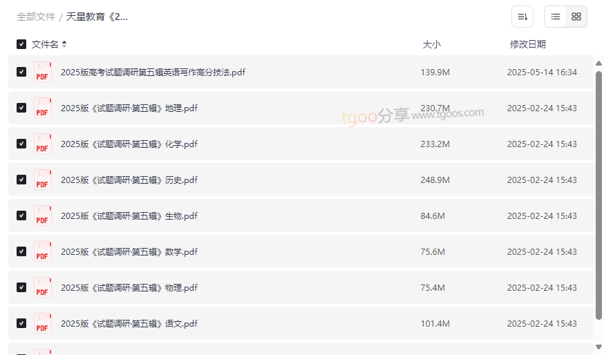 天星教育《2025高考试题调研·第五辑(全科)》资源目录