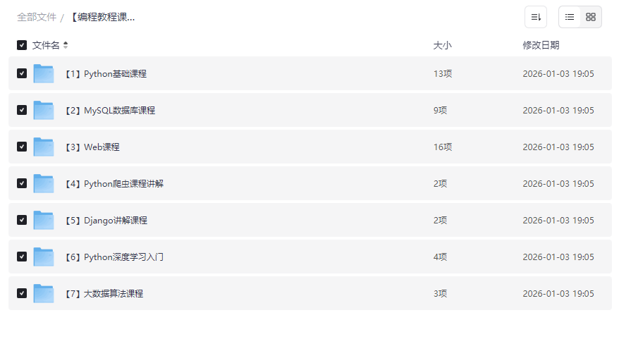 无论是想转行程序员、提升技能,还是从事数据分析和人工智能领域,这份高质量的Python编程课程资源都能提供全面而实用的学习路径。