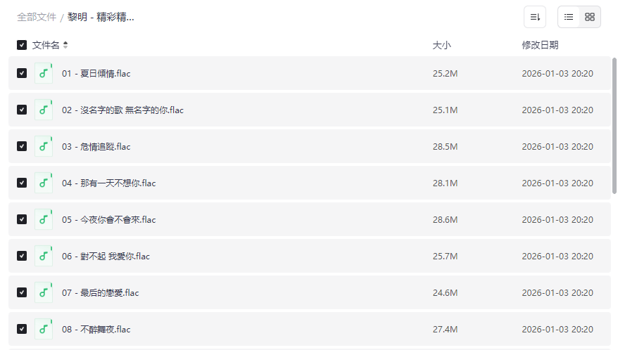 黎明《精彩精选》资源目录