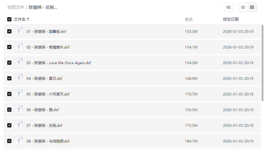 资源地址:《反叛》陈慧娴2016 DSD DSF高解析音频专辑网盘下载
