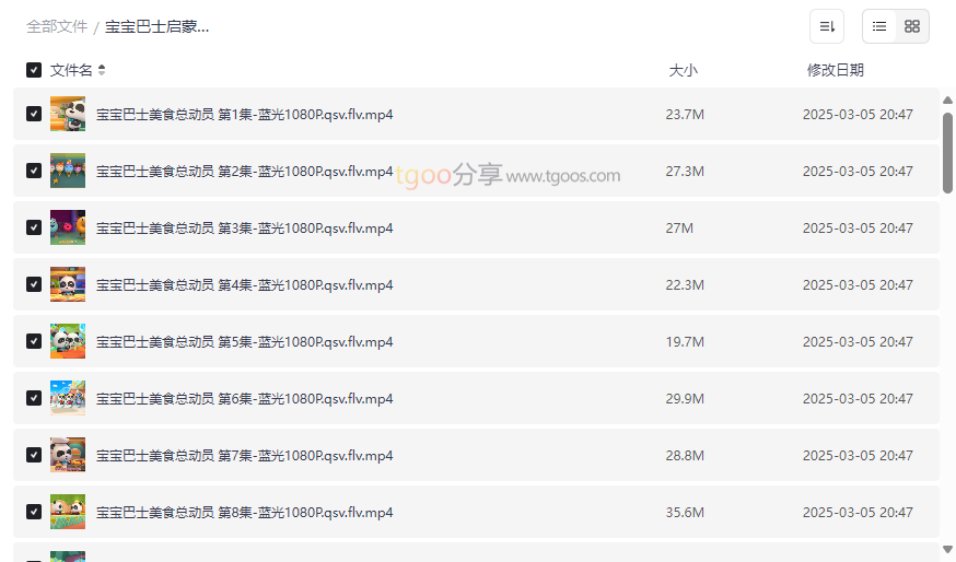 本资源提供全系列44集内容,每集独立成篇又相互关联,通过渐进式的情节设计,系统性地介绍各类美食知识。蓝光1080P高清画质确保画面细节丰富、色彩饱满,保护幼儿视力的同时提升观看体验。 - 第1-9集 | 基础美食认知,培养饮食兴趣