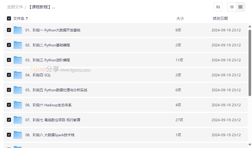 “黑马Python+大数据年度钻石会员”是一套价值24980元的综合性技术课程,专为希望掌握Python编程与大数据技术的学习者设计。本资源覆盖从编程基础到企业级项目实战的14个完整阶段,内容包含Linux系统、MySQL数据库、Hadoop生态、Spark技术栈、Flink实时计算等核心技术模块,并结合多个行业真实项目案例。这套高质量网盘资源特别适合: