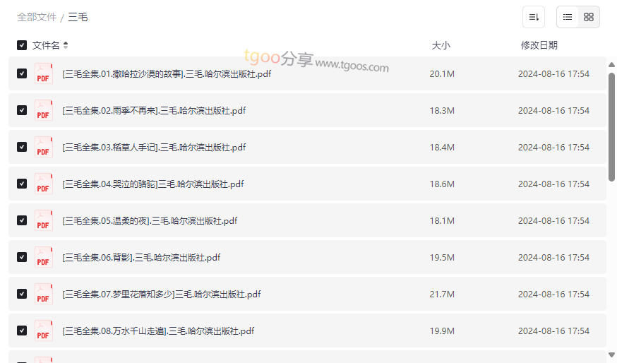 资源地址:《三毛全集19册》免费高清网盘资源下载|完整文学珍藏版