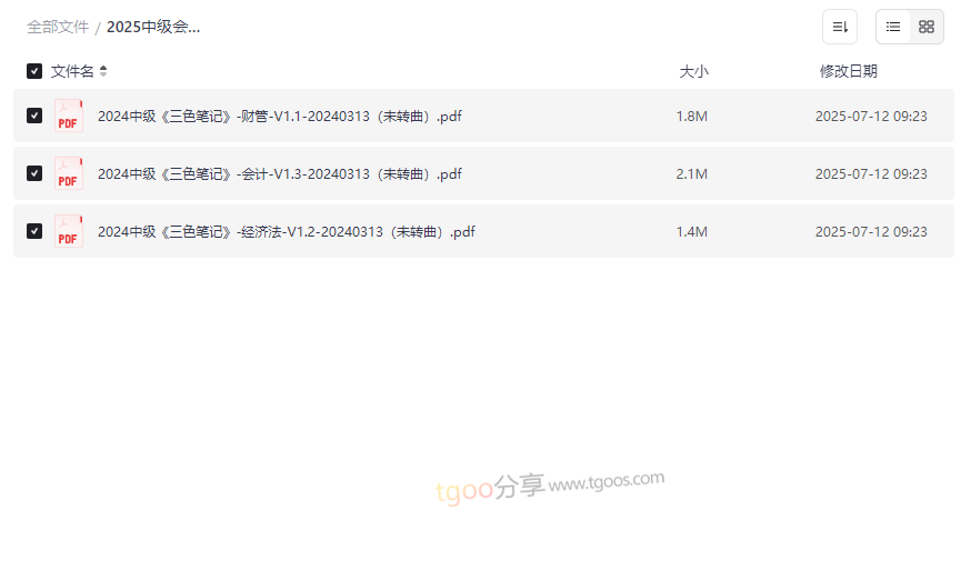 2025中级会计三色笔记资源目录