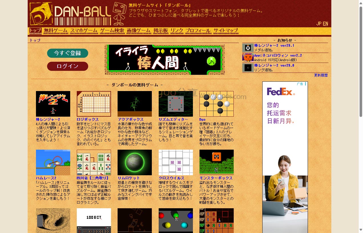 無料ゲームサイト ダンボール(Dan-Ball)是一个专注于免费Flash游戏与物理模拟游戏的日本在线游戏平台,提供丰富多样的网页游戏体验,帮助游戏爱好者、学生、休闲玩家实现轻松娱乐与创意探索。该网站主要收录物理游戏、像素游戏、沙盒模拟等类型,典型使用场景包括课堂间隙放松、创意物理实验、简单编程启蒙等。据公开信息,平台所有游戏均为免费游玩,无需注册即可直接体验,支持日语界面但部分游戏操作直观易懂。与传统商业游戏平台相比,Dan-Ball以其独特的物理引擎游戏和像素风格作品著称,特别是”粉末游戏”系列让用户能够自由创造各种物理现象与互动场景。网站访问通常无需加速,但由于使用Flash技术,部分浏览器可能需要启用Flash支持或使用兼容模式。