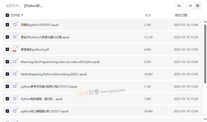 这份高质量Python学习资源合集为不同阶段的学习者提供了系统而全面的知识体系,是Python学习道路上不可或缺的宝贵资料。
