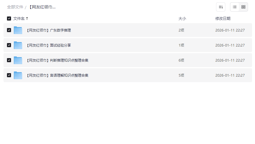 “网友红领巾”作为备受推崇的公考学习资源分享者,以其系统化、高质量的备考笔记在考生中广受好评。本资源集合了 数字推理、判断推理、言语理解、面试经验 等核心模块,结合题本、视频解析与知识点整理,为公考学习者提供全方位备考支持。资源特色在于: