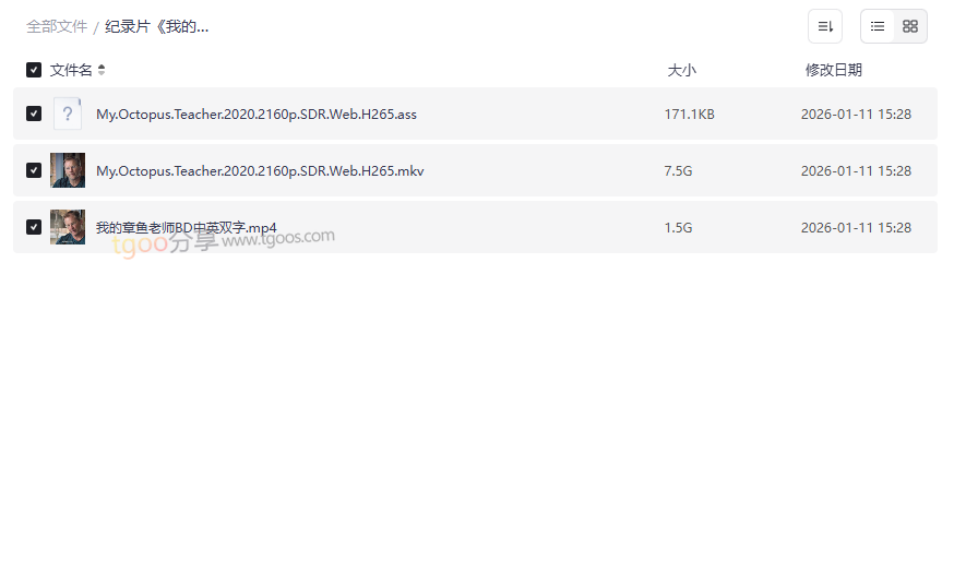 纪录片《我的章鱼老师》资源目录