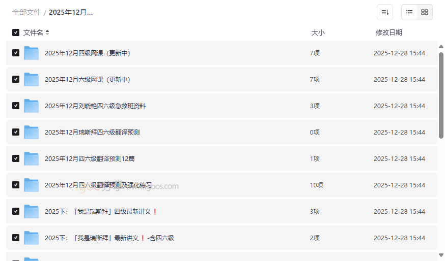 资源地址:2025年12月四六级备考资料包免费下载 | 最新网课+押题卷+预测题合集