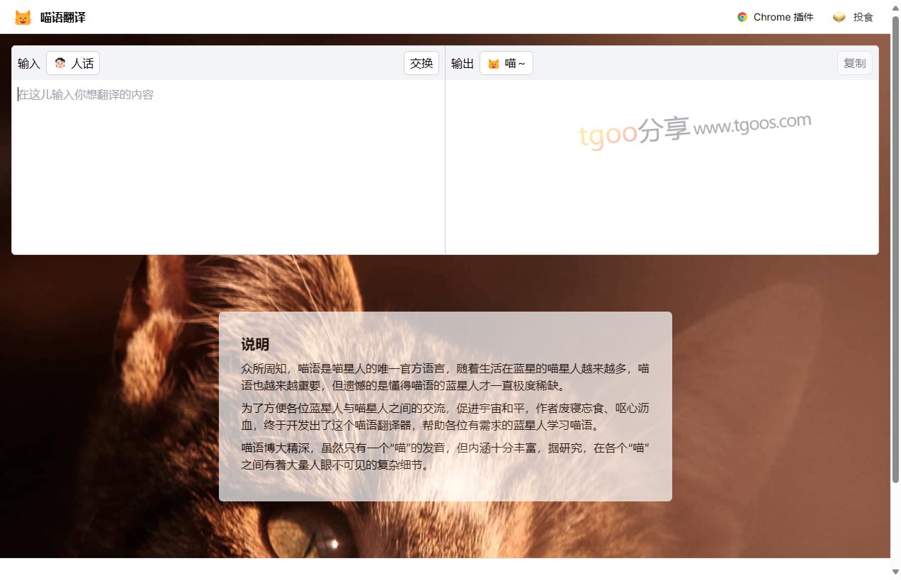 趣站地址:喵语翻译-猫语与人类语言趣味互译