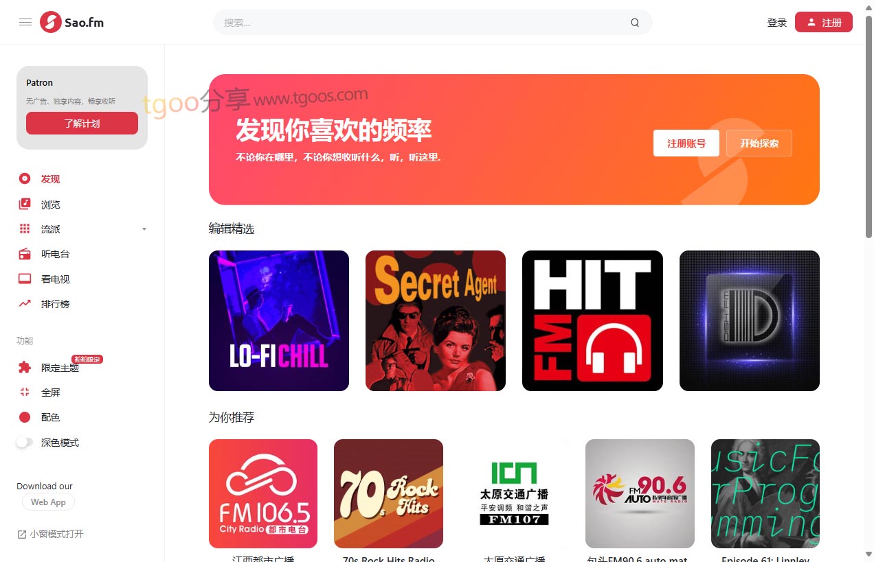趣站地址:Sao.fm-全球电台流媒体在线收听