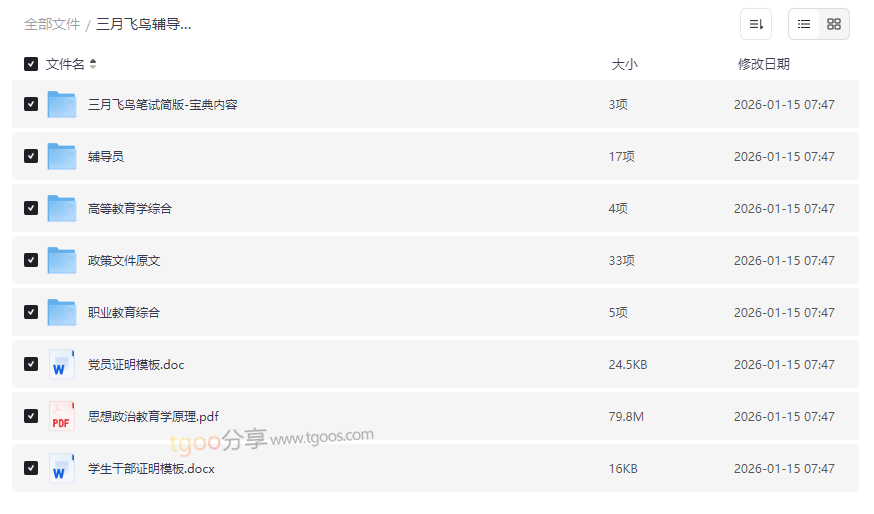 资源地址:《三月飞鸟辅导员笔试资料包》2024最新版 | 一站式备考方案网盘下载