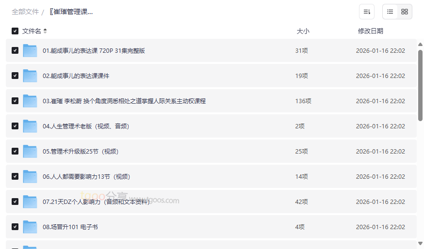 无论你正处于职业瓶颈期、管理困惑期,还是单纯希望提升自我,这份崔璀管理课全集资源都能为你提供一套长期、系统且极具实操价值的学习支持体系。