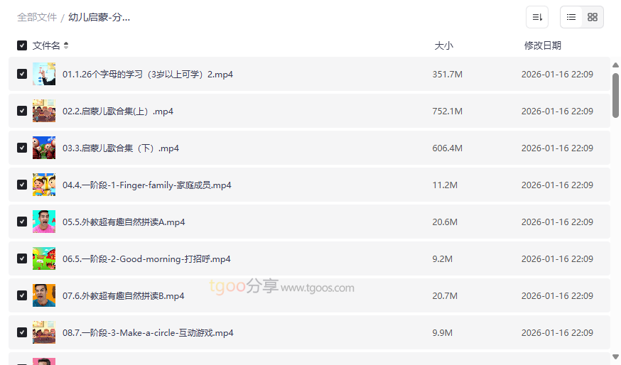 资源地址:《幼儿启蒙-分阶动画儿歌》0-9岁英语启蒙系统资源网盘下载